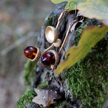 Materiál: žaludy, měď, pozlacené 23K zlatem, antioxidační prostředek, sklo