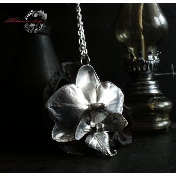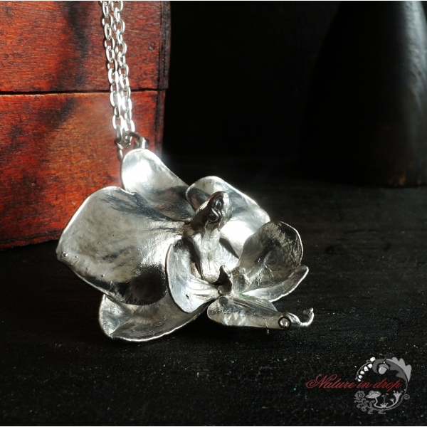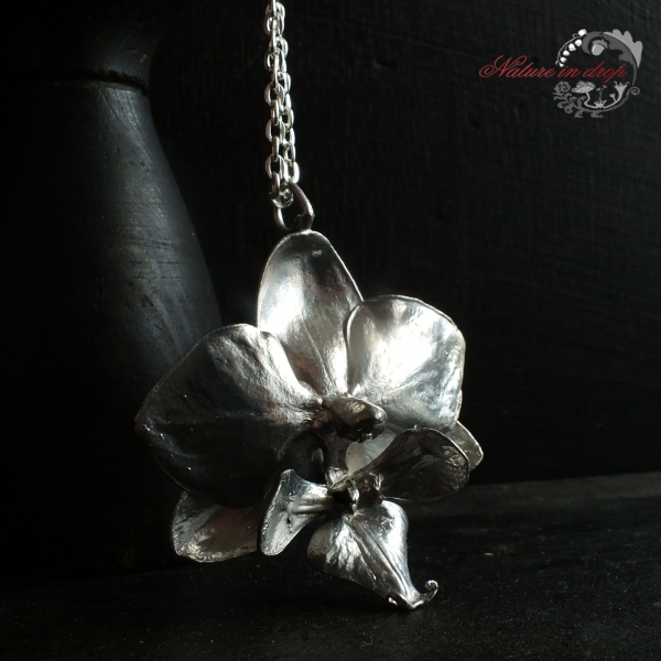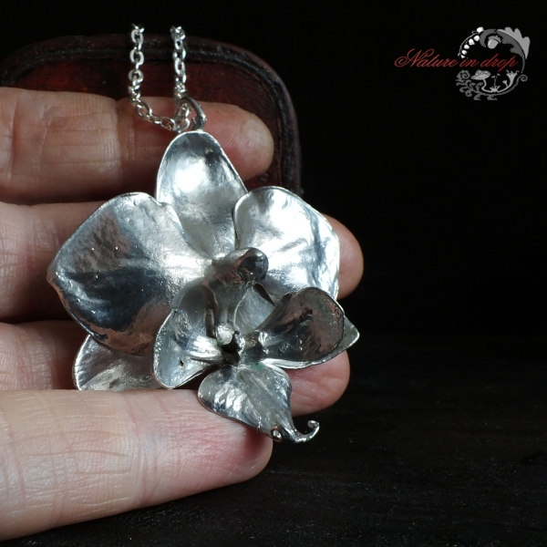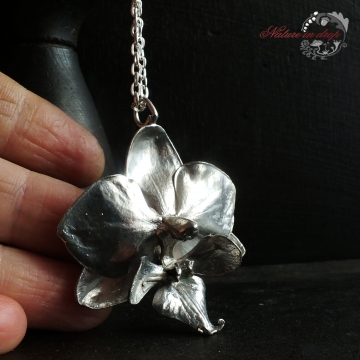 Материал: цветок орхидеи, медь, посеребрение, родирование